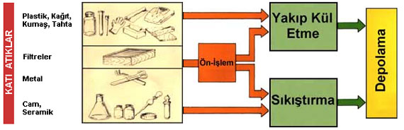 seramik, metal katı atıklar ise yanmaya uygun