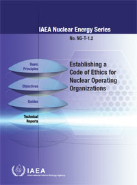 Her kuruluş öz değerlerine dayanan kendine has bir etik yasası geliştirmelidir. Nükleer endüstri kuruluşlarındaki etik yasası bunlara ek olarak radyasyon, güvenlik, çevre ve nükleer silahsızlanma gibi nükleer bilimlere ve nükleer teknolojiye özgü konuları da içermelidir.